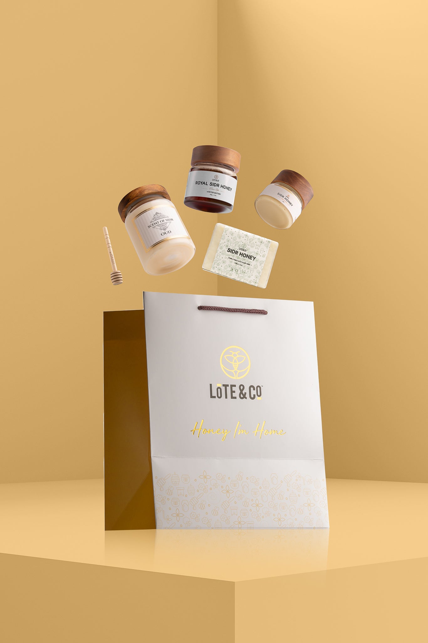 Create a lasting impact when presenting a thoughtful gift with our gold-foiled gift bag. Ideal for various occasions such as parties and corporate events, it enhances the perfection of your gift. These bags offer ample space for a diverse range of treasures, from honey and candles to serums and soaps. With sturdy rope handles, carrying your chosen items becomes a breeze. Make every gift extraordinary with our premium Gift Bag.