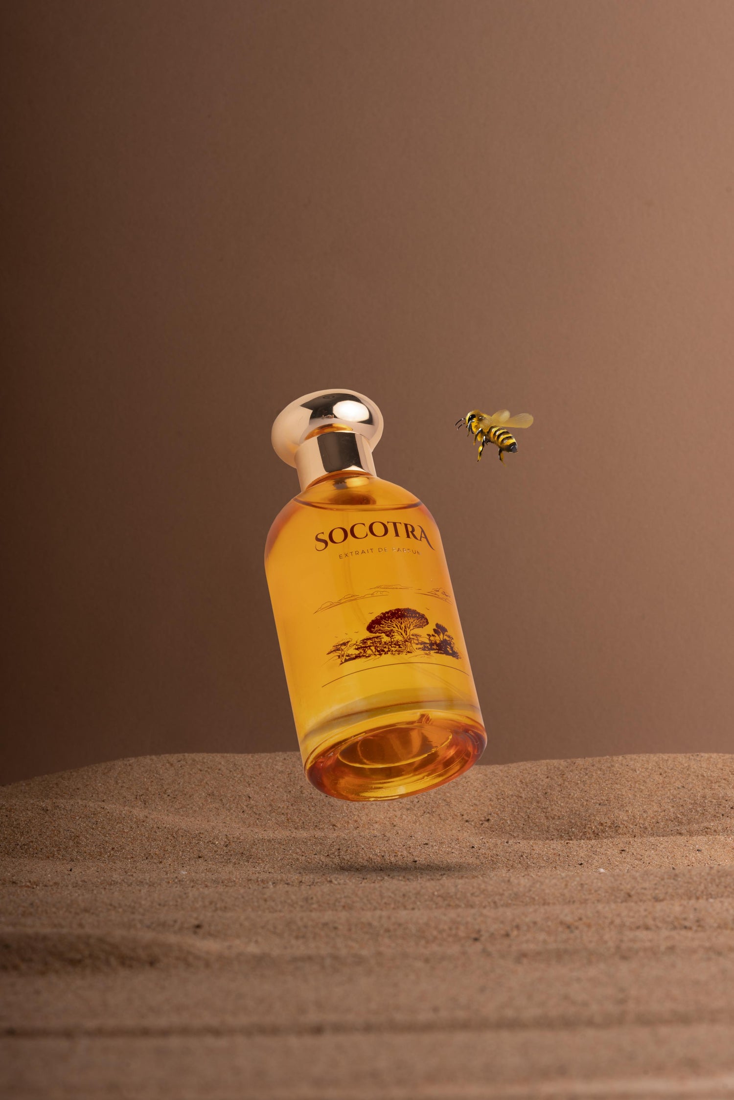 The design on the perfume bottle reflects Socotra Island in Yemen, one of the most biodiverse and distinct islands in the world. The golden cap is crafted from zamac, giving it a luxurious appearance, substantial weight, and a rich touch.